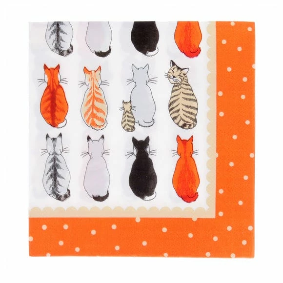 Designed by Ulster Weavers and supplied as a pack of 20, these adorable paper napkins are part of the Cats in Waiting collection and boast a luxury 3-ply quality. Perfect for serving finger foods, slices of cakes and sandwiches, these square paper napkins are ideal for protecting your clothing and table settings whilst eating and have been finished in deep saffron orange colours.