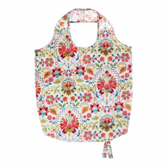 Designed by Ulster Weavers from 100% polyester, this packable reusable shopping bag is part of the Bountiful Floral collection and folds up into a small size for ease of storage and keeping in your handbag to prevent buying plastic bags. Designed with an array of brightly coloured flowers adorn a cream background, inspired by traditional Arts and Crafts designs but with a modern twist of colour, this polyester reusable shopping bag is super light and features an easy wrap and button closure.