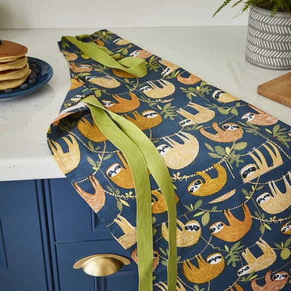 Designed by Ulster Weavers from 100% cotton, this cotton apron is part of the Hanging Around collection and helps bring the rainforest into your home. Designed with an adorable sloth printed design with bright and bold colours, this cotton apron is machine washable for ease of cleaning with adjustable neck straps and waist ties and co-ordinating items available to purchase separately.