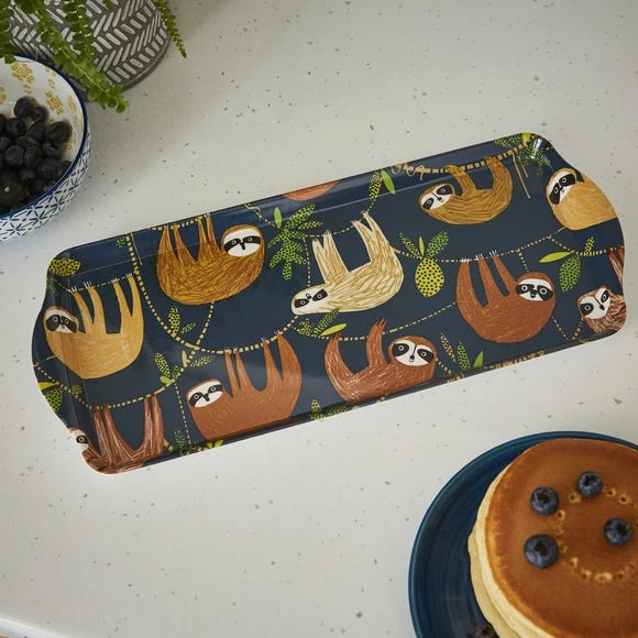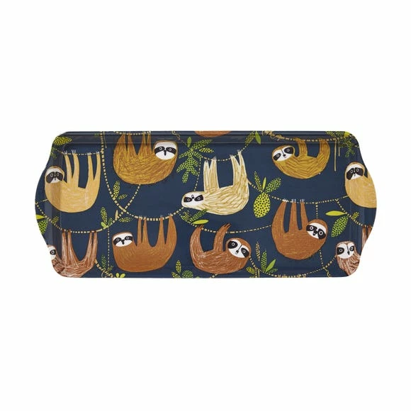 Designed by Ulster Weavers from 100% melamine, this small melamine tea tray is dishwasher safe for ease of cleaning and has been finished with an adorable sloth printed design on a deep navy blue background. Part of the Hanging Around collection, matching trays in different sizes are available to purchase separately.