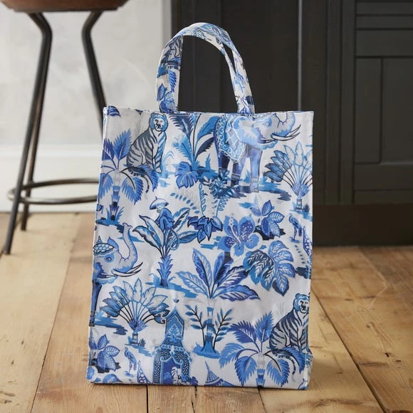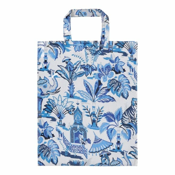 Inspired by the Indian Jungle, this medium PVC bag has an ornate and decorative feel to it. In addition to its 100% cotton composition, this bag also has a PVC coating, meaning that you can simply wipe it clean with a damp cloth. This product features a magnetic clasp for closing, and an inner pocket with a zip. Co-ordinating products are available for purchase.