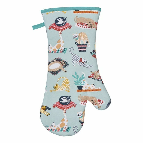 Featuring a charming, cute cat design, this 100% cotton oven glove is ideal for adding a bit of character to your kitchen. This product is machine washable. Co-ordinating products are available for purchase.