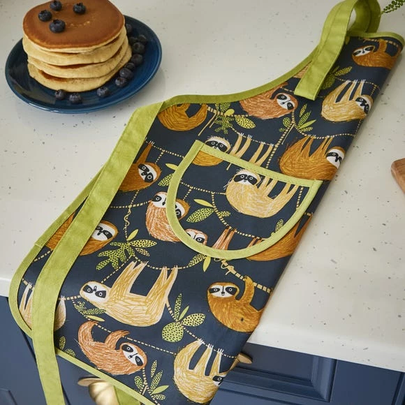 Designed by Ulster Weavers, this kids PVC apron is perfect for protecting your child’s clothes whilst cooking and baking and has been designed with a cute and curious sloth design on a bold navy blue background. Part of the Hanging Around collection, this PVC apron has been designed from 100% cotton with PVC coating which can easily be wiped clean when required.