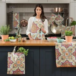 Designed by Ulster Weavers from 100% cotton, this machine washable single oven glove gauntlet is perfect for taking hot dishes and trays out of the oven with ease. Designed as part of the Moroccan Tiles collection, this single oven has been finished with a stunning colourful tiled print inspired by the art of Morocco. Co-ordinating items are available to purchase separately.