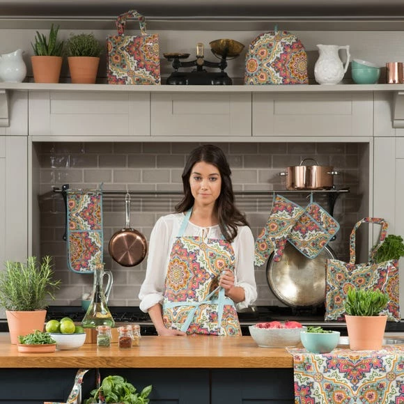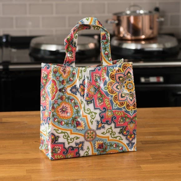 Designed by Ulster Weavers from 100% cotton with PVC coating, this small reusable bag can easily be wiped clean when required and has been designed with a magnetic clasp for closing and an inner pocket with zip fastening for extra storage. Part of the Moroccan Tiles collection, this reusable bag has been finished with a stunning, colourful all over tiled print which has been inspired by the art of Morocco.