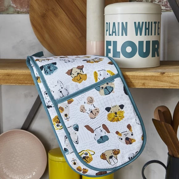 Featuring a charming, fun dog design, this 100% cotton double oven glove is ideal for adding a splash of colour to your kitchen. This product is machine washable. Co-ordinating products are available for purchase.