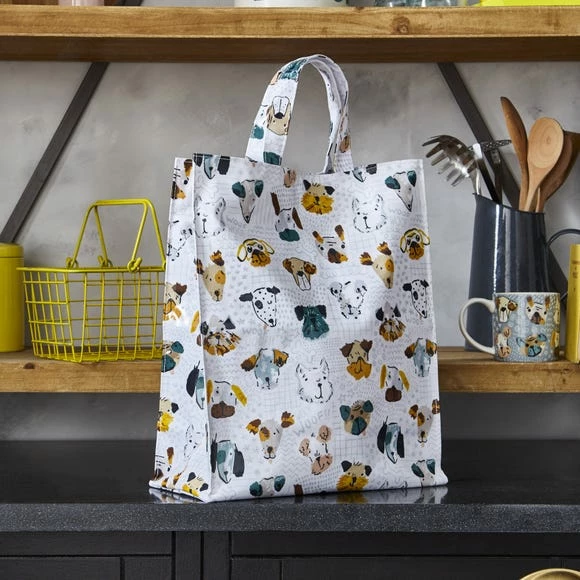 Featuring a charming, fun dog design, this medium PVC bag is a charming addition to any kitchen. In addition to its 100% cotton composition, this bag also has a PVC coating, meaning that you can simply wipe it clean with a damp cloth. This product features a magnetic clasp for closing, and an inner pocket with a zip. Co-ordinating products are available for purchase.