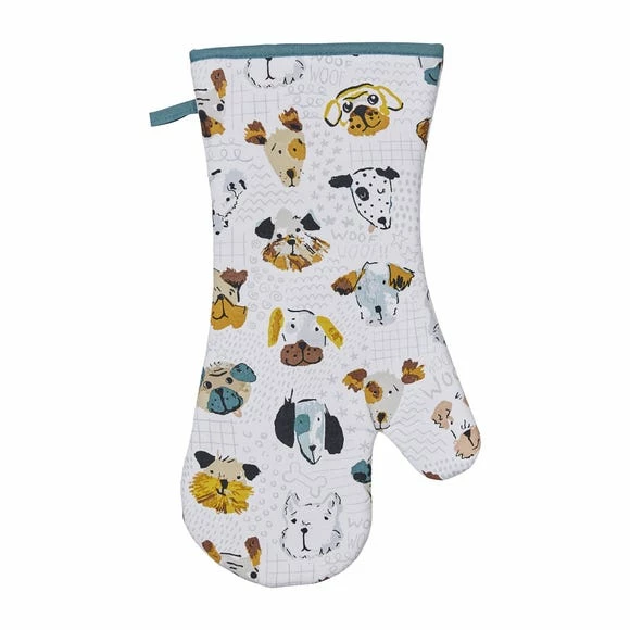 Featuring a charming, fun dog design, this 100% cotton oven glove is ideal for adding a splash of colour to your kitchen. This product is machine washable. Co-ordinating products are available for purchase.