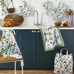 Bursting with colour and personality, this Tropical Birds small PVC bag is a refreshing addition to any kitchen. In addition to its 100% cotton composition, this bag also has a PVC coating, meaning that you can simply wipe it clean with a damp cloth. This product features a magnetic clasp for closing, and an inner pocket with a zip. Co-ordinating products are available for purchase.
