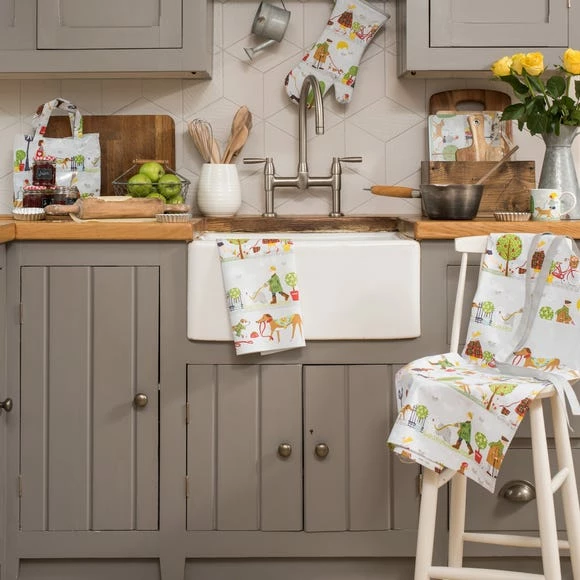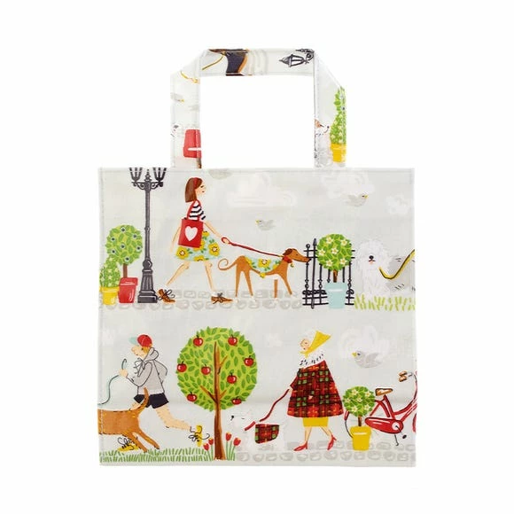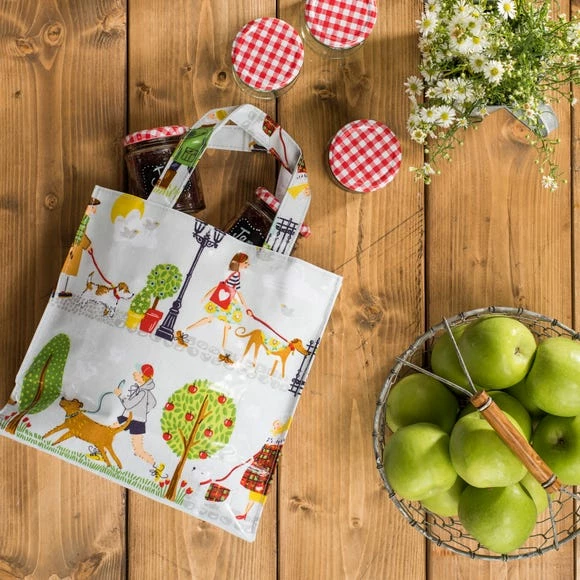 Featuring a colourful, charming dog-walking design, this small PVC bag is ideal for adding a splash of colour to your kitchen. In addition to its 100% cotton composition, this bag also has a PVC coating, meaning that you can simply wipe it clean with a damp cloth. This product features a magnetic clasp for closing, and an inner pocket with a zip. Co-ordinating products are available for purchase.